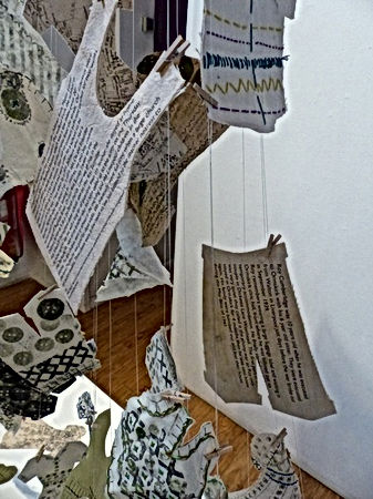 This interactive art piece was part of an artist in residency. Inspired by collecting research, listening to personal stories and experiences from living in Ormskirk as an evacuee, during WW2. The public were encouraged to engage by creating and decorating small scale items of clothing that could have been packed into an evacuees' suitcase. The textile suitcase's contents exploded onto the floor growing in scale as the weeks progressed.